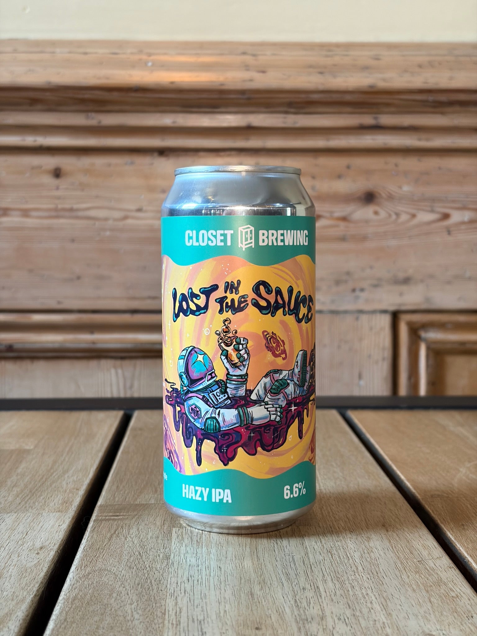 Kick-back like our groovy galaxy ranger and enjoy a glass of Lost in the Sauce. This hazy juicebomb is an explosion of stone fruits and citrus, courtesy of its iconic hop trio; Sabro, Citra and Idaho 7.